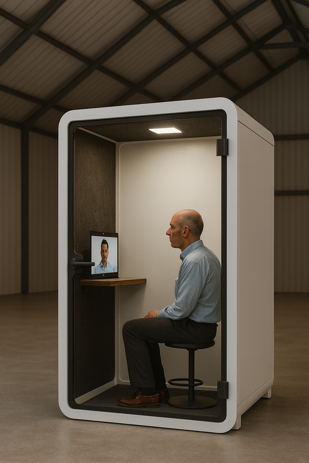 Private, soundproof booths for screenings, remote consultations, counseling, and emergency evaluations, giving hospitals flexible, confidential space where it’s needed most.