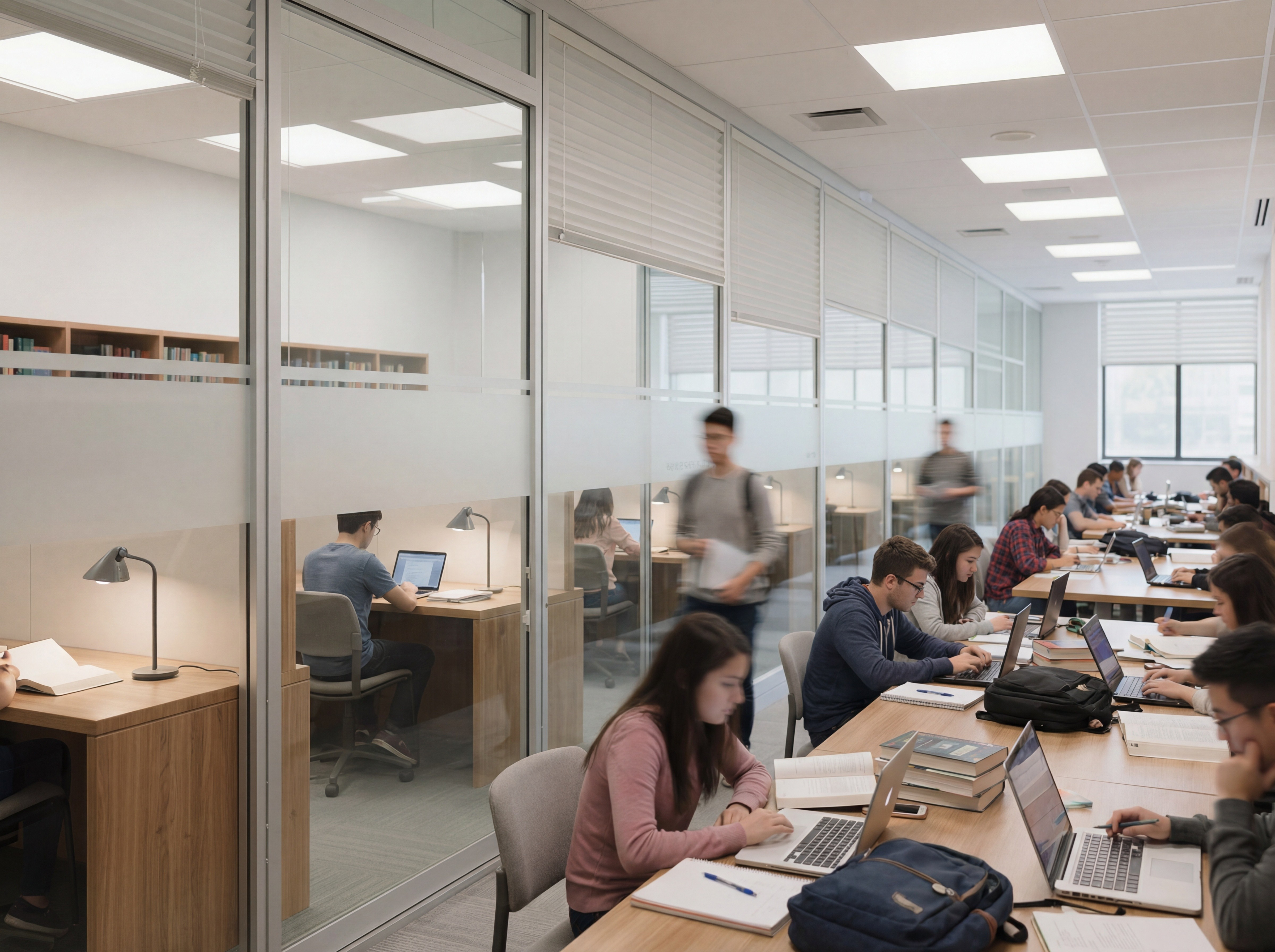 - Provide instant private spaces for focused academic work, online classes, and exams