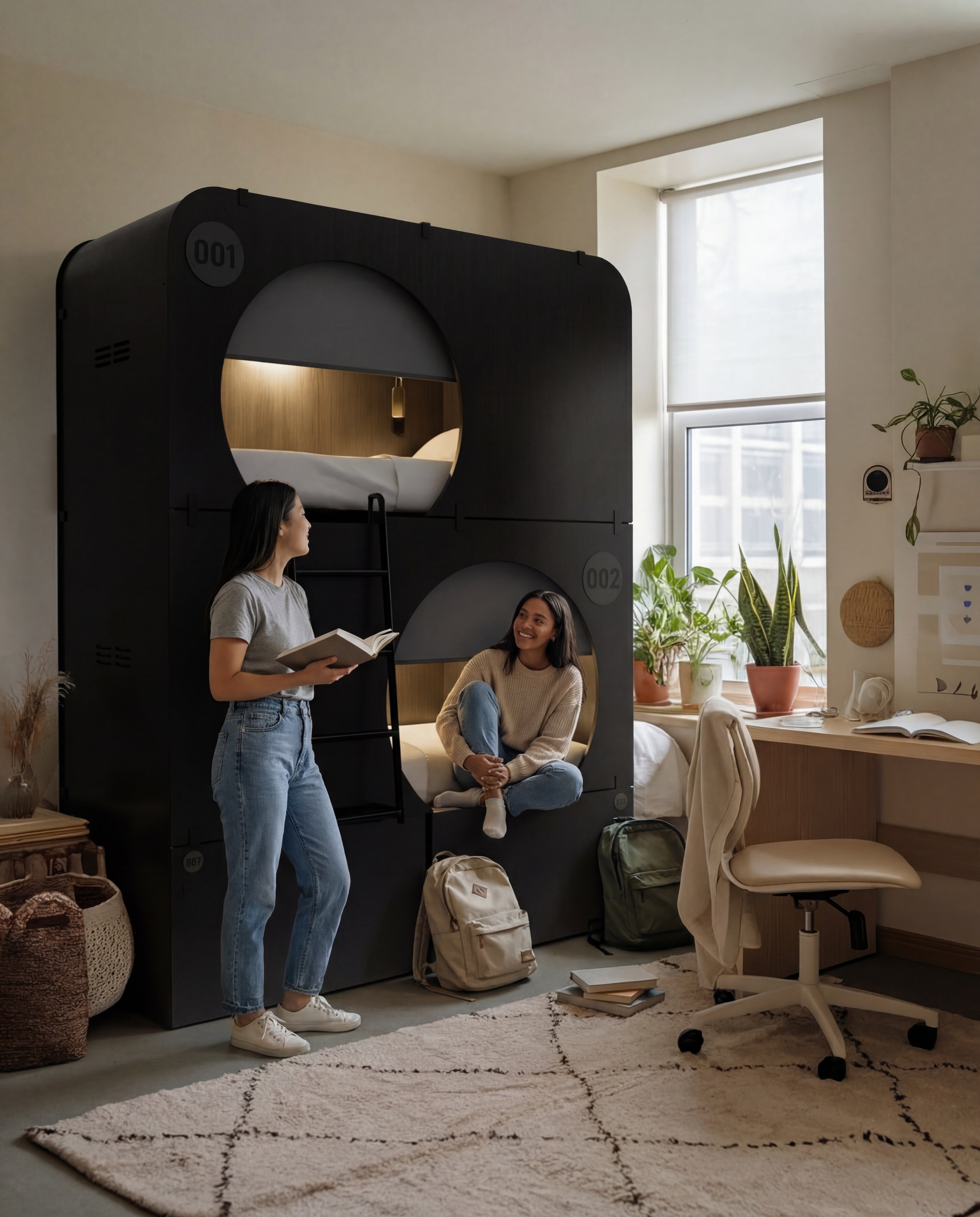 Yes — NapBox Economy Sleep Pods meet industry safety codes for educational housing, including guardrails, ladder design, and structural load requirements.